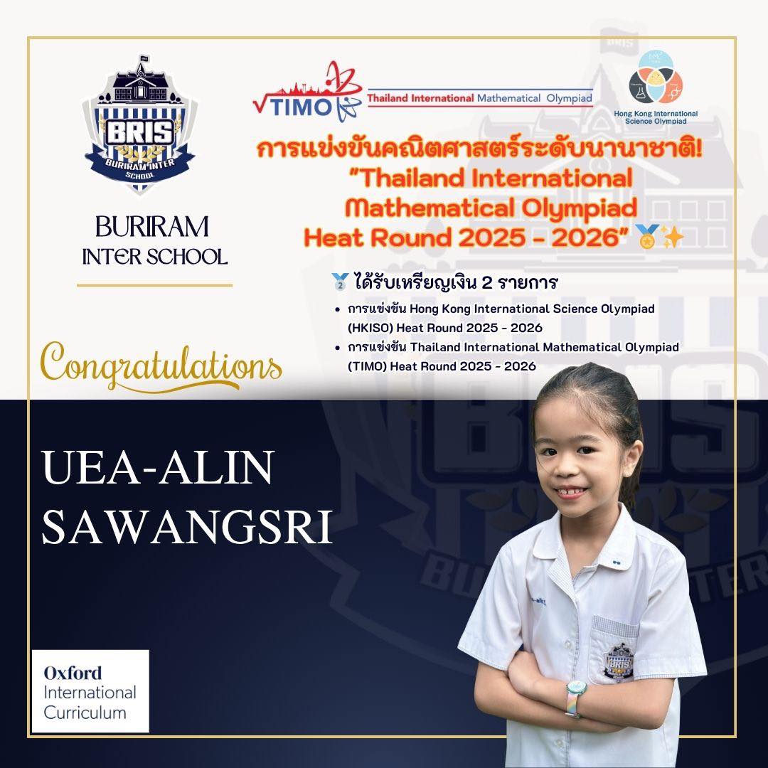 โรงเรียนบุรีรัมย์อินเตอร์สคูล ขอเป็นกำลังใจให้น้องเอื้ออลิน พัฒนาตนเองต่อไปเพื่อสร้างแรงบันดาลใจให้กับเพื่อนๆ และก้าวสู่ความสำเร็จที่สูงขึ้นต่อไป!