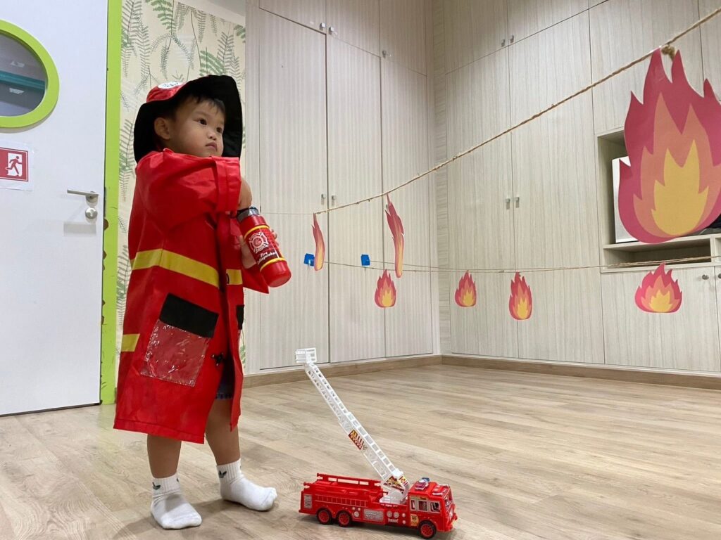 To help children learn about community helpers, especially firefighters, by understanding their roles, responsibilities, and the tools they use. The activity encourages children to connect objects with occupations, develop an awareness of basic safety, and promotes holistic development in the four key areas as follows: