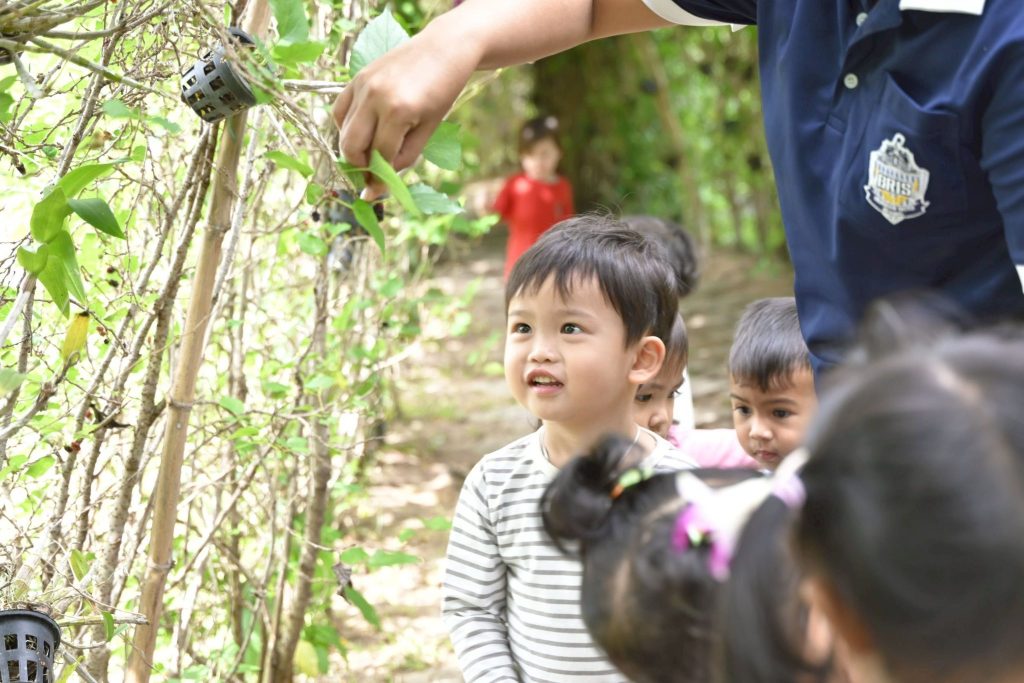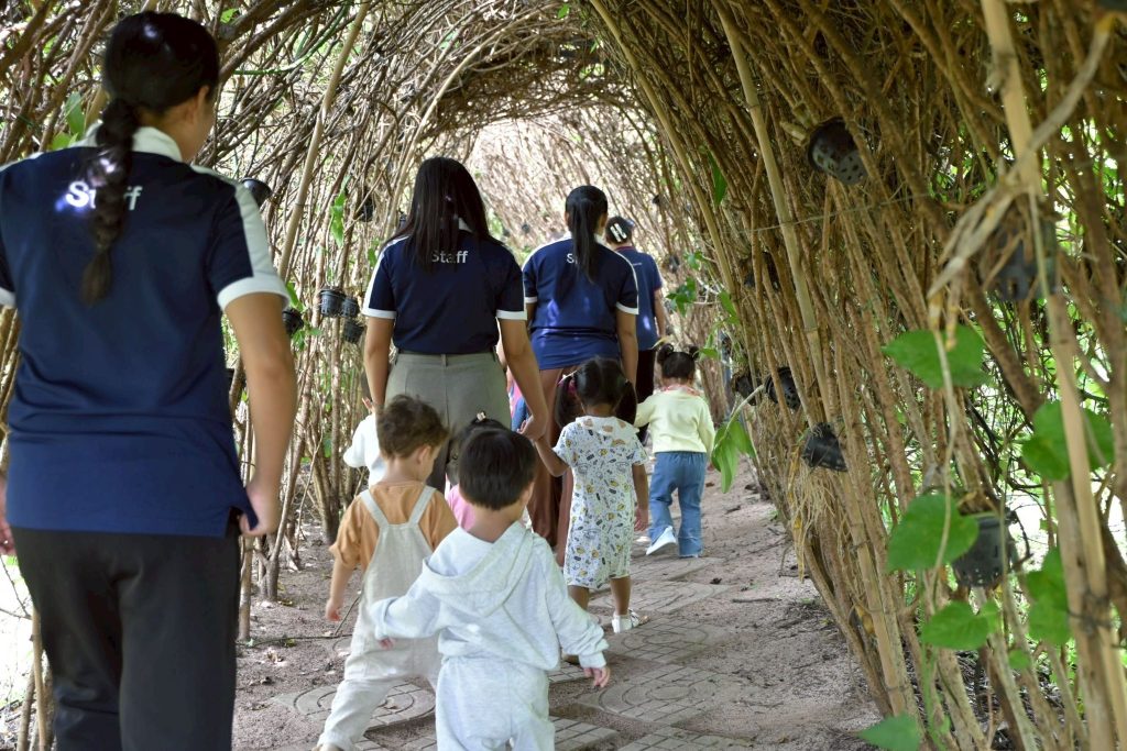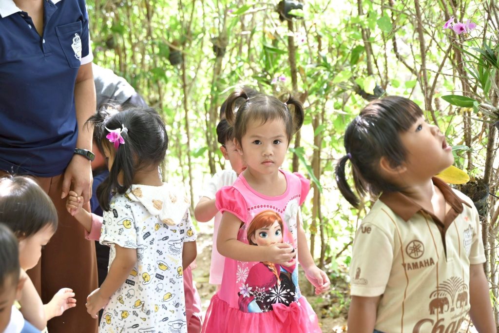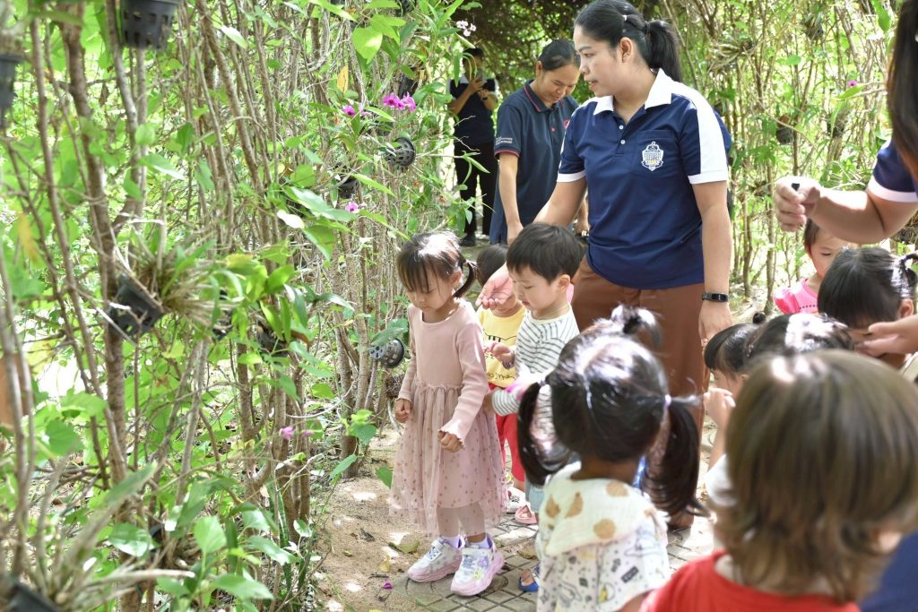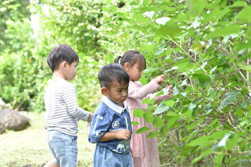 วัตถุประสงค์: เพื่อส่งเสริมให้เด็กๆ ได้เรียนรู้จากประสบการณ์ตรงในธรรมชาติ ผ่านการสำรวจสิ่งแวดล้อมรอบตัว ต้นไม้ ใบไม้ กลิ่น เสียง และพื้นผิวของสิ่งต่างๆ เด็กๆ ได้ฝึกการสังเกต การใช้ประสาทสัมผัสทั้ง 5 รวมทั้งเรียนรู้เกี่ยวกับฤดูกาลและสภาพอากาศ นอกจากนี้ เด็กๆ ยังได้เรียนรู้การแบ่งปันและช่วยเหลือเพื่อนขณะทำกิจกรรมร่วมกัน ฝึกความมีระเบียบ ความอดทน และความสนใจใฝ่รู้ในธรรมชาติรอบตัว ส่งเสริมพัฒนาการรอบด้าน