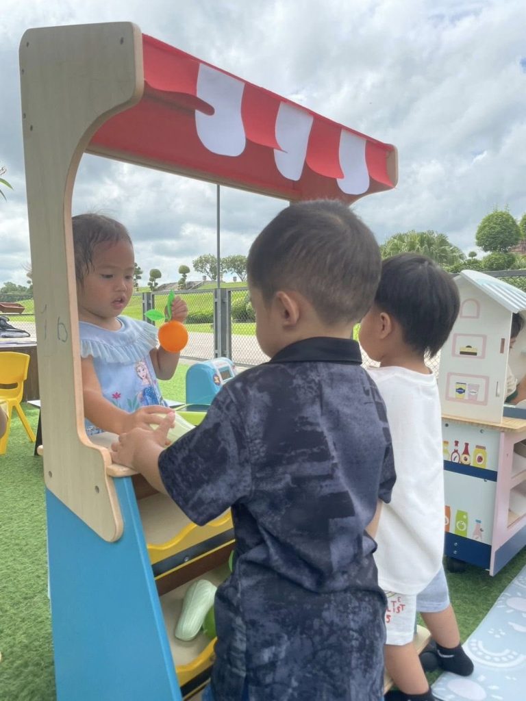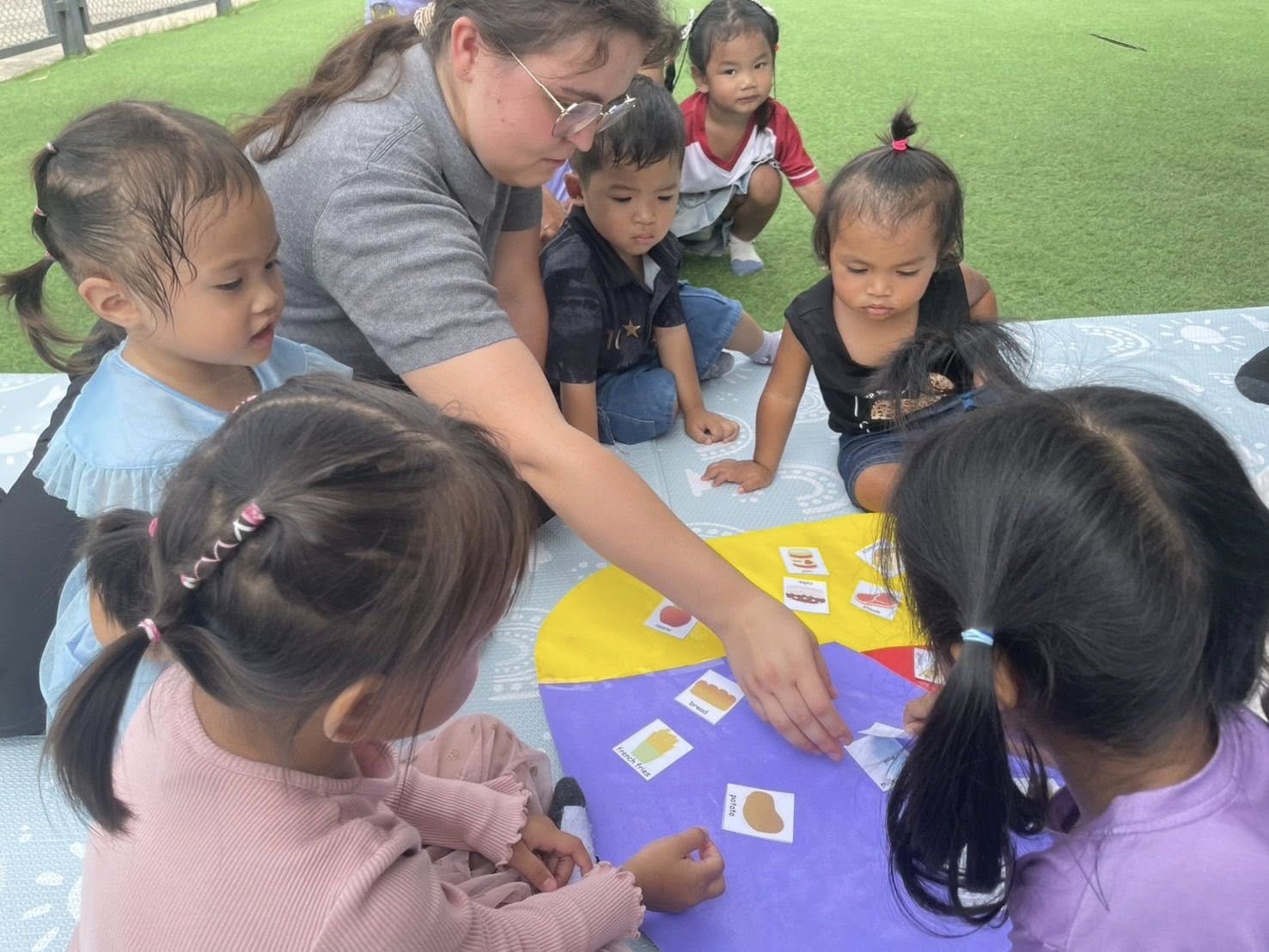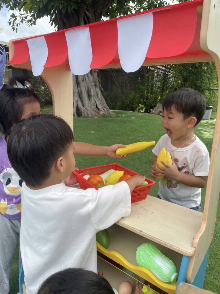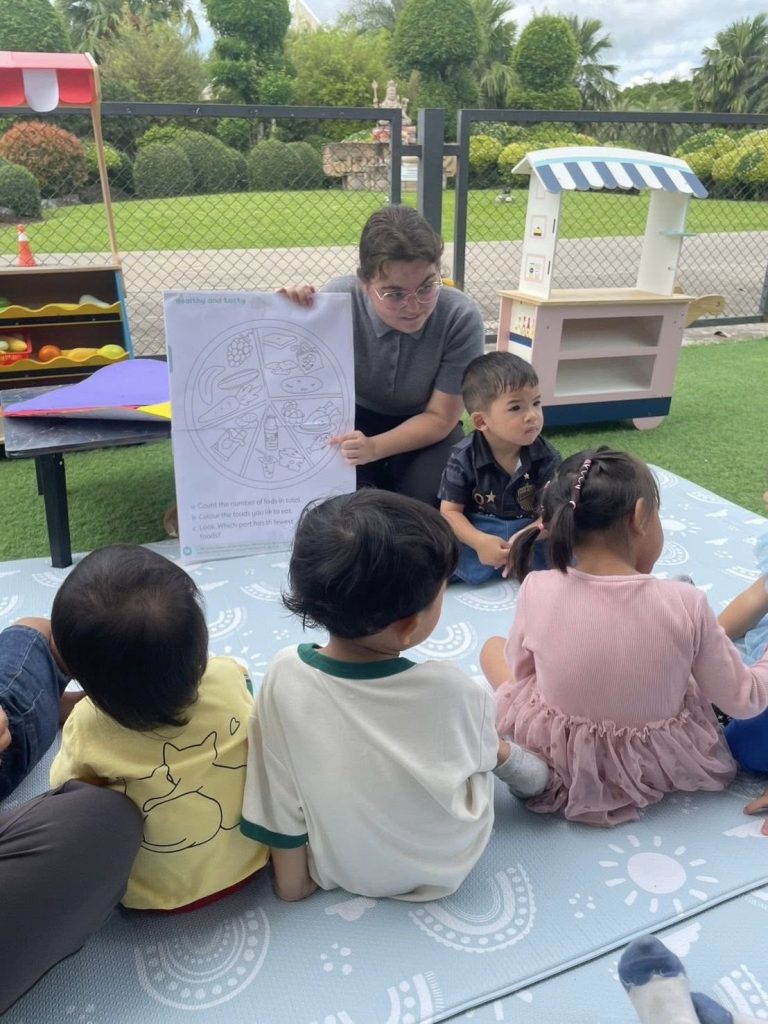 วัตถุประสงค์ : เพื่อให้เด็กๆ ได้เรียนรู้เกี่ยวกับความสำคัญของอาหารต่อร่างกาย โดยเข้าใจว่าอาหารช่วยให้เราเติบโตและมีพลังในการเล่น เด็กๆ ได้ฝึกสังเกต แยกประเภทของอาหาร ผัก ผลไม้ ข้าว แป้ง และของหวาน ผ่านกิจกรรมจับคู่ภาพอาหาร การจัดอาหารลงใน จานสุขภาพและการเล่นบทบาทสมมติ ร้านขายของ ส่งเสริมพัฒนาการทั้ง 4 ด้าน ดังนี้ นฃร่างกาย,อารมณ์,สังคม,สติปัญญา