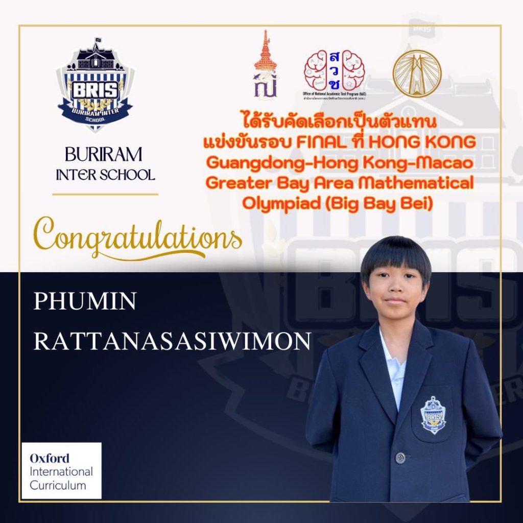 BURIRAM INTER SCHOOL ขอแสดงความยินดีกับเด็กชายภูมิ